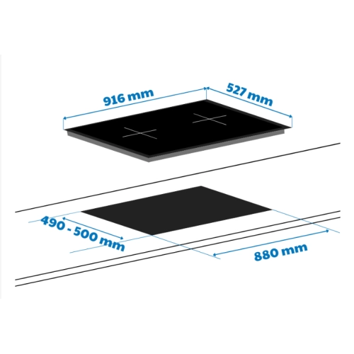• Kích thước lắp đặt: 880R x 490-500S mm