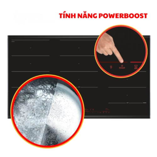 Bếp còn được trang bị tính năng PowerBoost giúp gia nhiệt nhanh chóng, rút ngắn thời gian nấu lên đến 50% so với bếp từ thông thường. Điều này rất tiện lợi khi bạn cần nấu gấp các món ăn trong thời gian ngắn hoặc đun nước sôi nhanh chóng cho các bữa ăn hàng ngày.