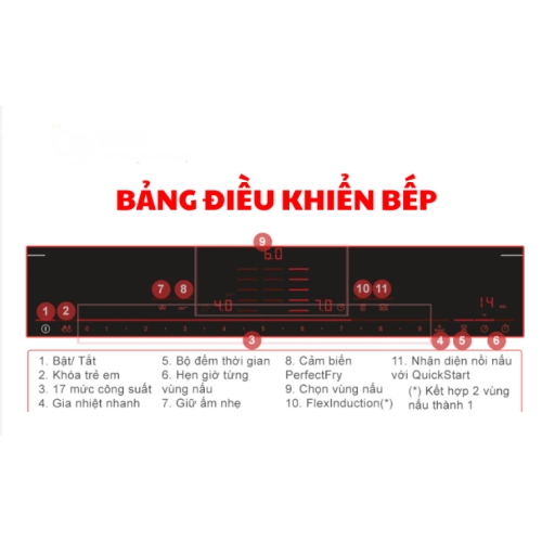• Nhận Diện Nồi/Chảo: Bếp chỉ hoạt động khi có nồi/chảo đặt lên đúng vùng nấu, giúp tránh lãng phí điện năng và bảo vệ bếp.
