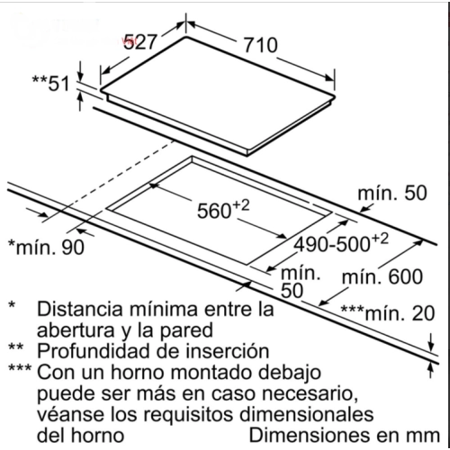 • Kích thước cắt đá: 560 - 562R x 490 - 500S x 51C mm