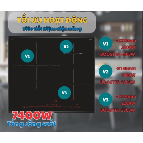 1. Hiệu suất mạnh mẽ với ba vùng nấu linh hoạt