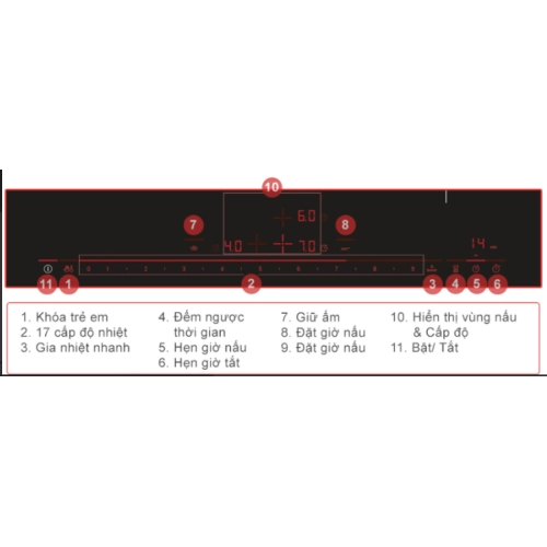 • Chất liệu mặt bếp: Kính Ceramic - Schott Ceran (Đức)