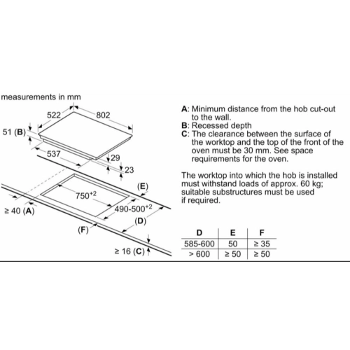• Kích thước bề mặt 802R x 522S x 51C mm phù hợp với nhiều loại bếp.