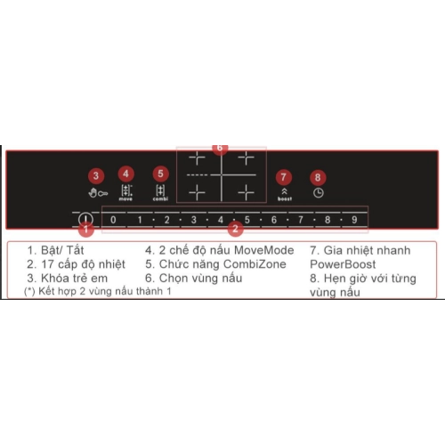 • Chất liệu mặt bếp: Kính Ceramic - Schott Ceran (Đức)