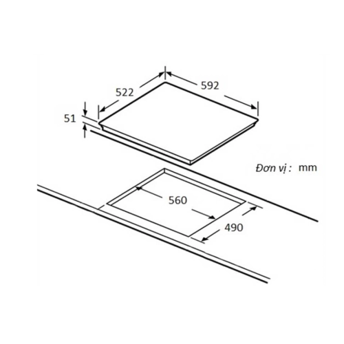 • Kích thước bề mặt: 592R x 522S x 51C mm