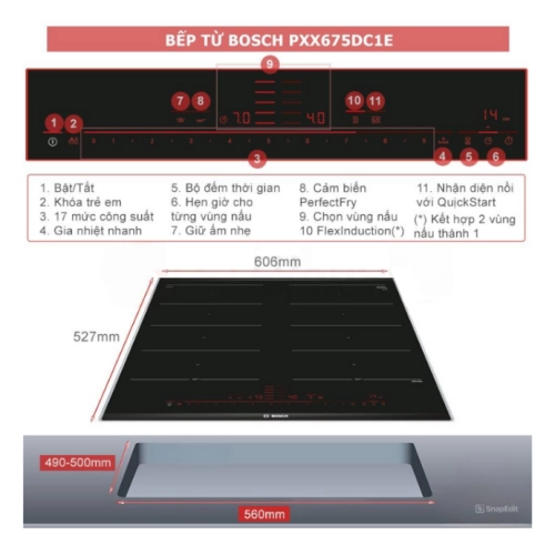 Thông số kỹ thuật Bếp từ Bosch PXX675DC1E SERIE 8
