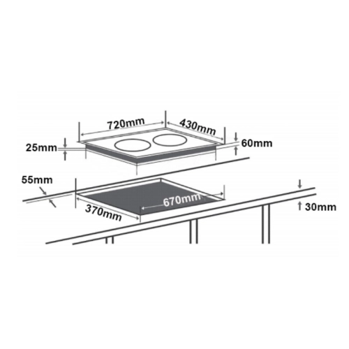 - Kích thước sản phẩm: 720R x 430S x 55C mm