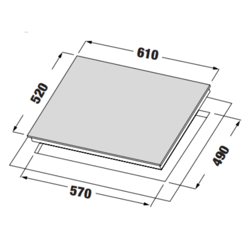 - Kích thước mặt kính: 610R × 520S mm