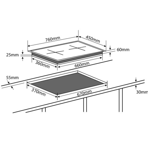 - Chất liệu: Mặt kính Schott Ceran - Made in Germany