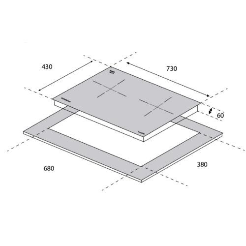 • Kích thước cắt đá: 680R x 380S mm