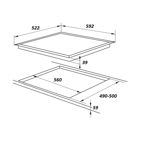 • Kích thước lắp đặt: 560R x 490-500S x 59C mm