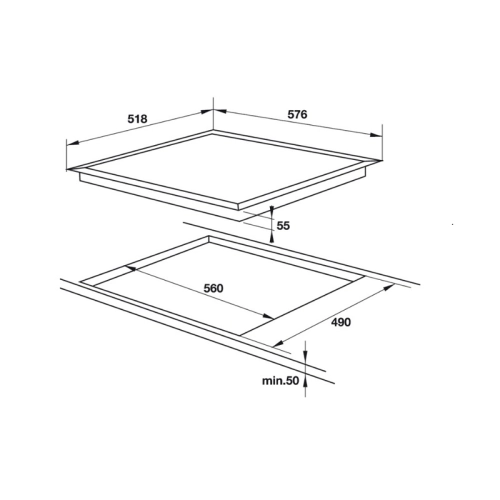 • Kích thước bếp từ Hafele : 576R x 518S x 55C mm