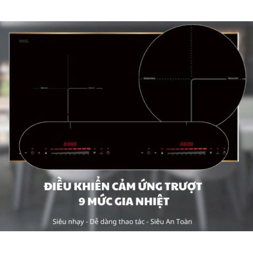 Bếp được trang bị bảng điều khiển cảm ứng dạng trượt hiện đại. Người dùng chỉ cần chạm nhẹ và trượt ngón tay để điều chỉnh mức công suất một cách trực quan và nhanh chóng. Với 9 mức gia nhiệt, bạn có thể dễ dàng chọn lựa chế độ phù hợp cho từng món ăn, từ giữ ấm nhẹ nhàng đến nấu sôi nhanh.