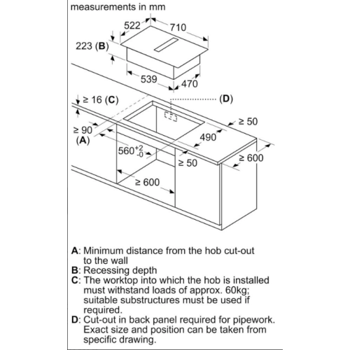 • 4 vùng nấu cảm ứng từ, 4 x Ø190/210mm x 240mm, 2.2 KW (có thể tăng đến 3.7 KW)