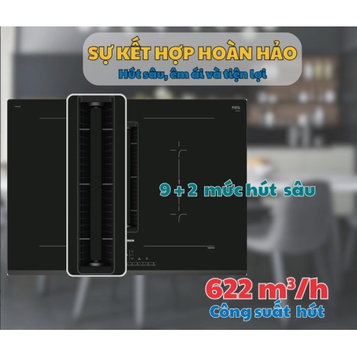 • Công suất máy hút mùi tích hợp: 622m³/h