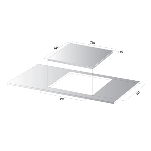 - Kích thước cắt đá: 695R x 395S mm