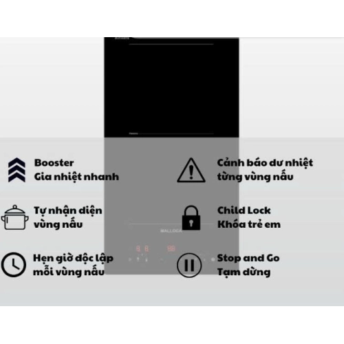 • Tự động nhận diện nồi (Pan Detection): Ngắt nguồn nếu không có nồi trên bếp, tiết kiệm điện và tránh rủi ro.