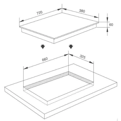• Kích thước cắt đá: 660R x 325S mm