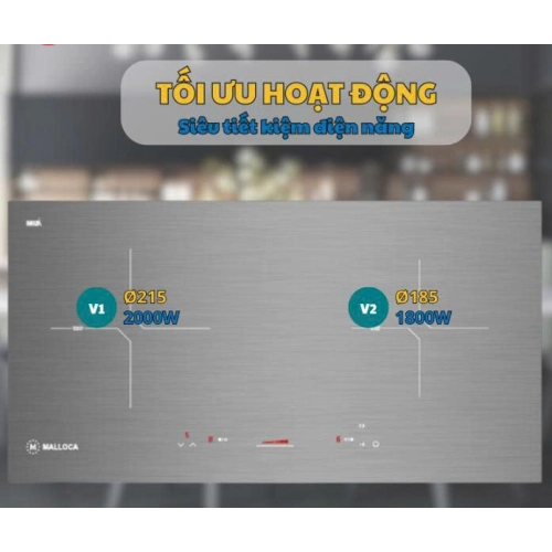 Với 2 vùng nấu từ có kích thước và công suất khác nhau (2kW (Ø215) + 1.8 kW (Ø 185)), Malloca MH-02IS đáp ứng tốt nhu cầu nấu nướng đa dạng của gia đình. Bạn có thể đồng thời chế biến nhiều món ăn khác nhau, tiết kiệm thời gian và công sức.