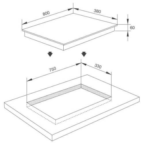 • Kích thước cắt đá: 750R x 330S mm