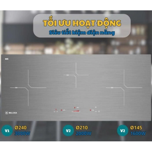 Với công suất linh hoạt được phân bổ trên 3 vùng nấu (3 kW, 2 kW và 1.6 kW), Malloca MH-03IS đáp ứng mọi nhu cầu nấu nướng từ đun sôi, hầm, đến chiên xào. Bạn có thể sử dụng đồng thời cả 3 bếp để tiết kiệm thời gian nấu nướng, đặc biệt trong những bữa ăn lớn hoặc khi cần nấu nhiều món cùng lúc.